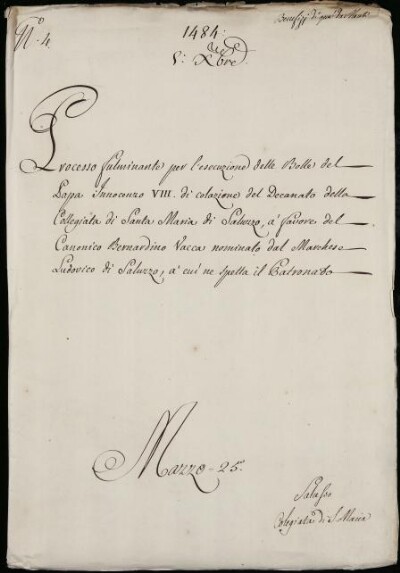 Sei in Strumenti di ricerca: Sezione Corte | Benefizi di qua dai monti in Materie ecclesiastiche [Inventario n. 81.2] | Benefizi di qua dai Monti | Mazzo 25 | Fascicolo 4. Salluzzo. Colleggiata di S.ta Maria nella Cattedrale