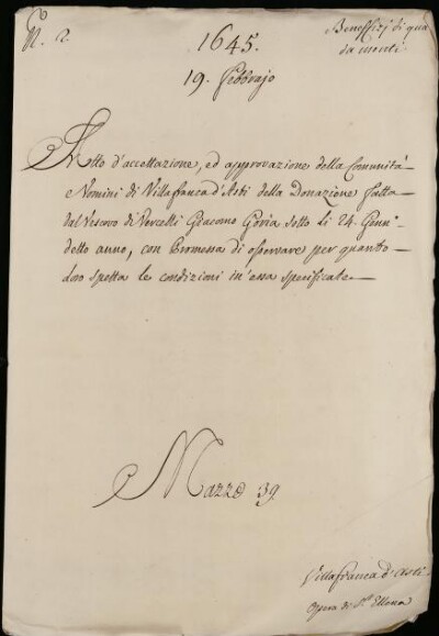 Sei in Strumenti di ricerca: Sezione Corte | Benefizi di qua dai monti in Materie ecclesiastiche [Inventario n. 81.2] | Benefizi di qua dai Monti | Mazzo 39 | Fascicolo 2. Villafranca d'Asti. Collegiata di S.ta Elena