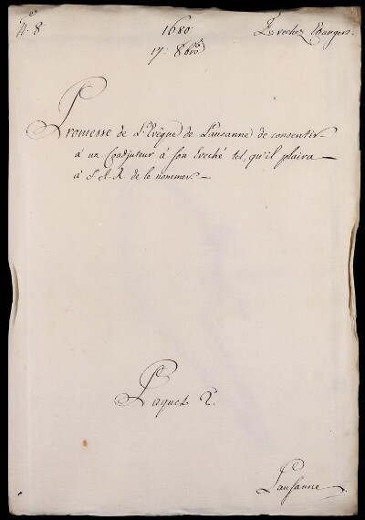 Sei in Strumenti di ricerca: Sezione Corte | Arcivescovadi e vescovadi stranieri in Materie ecclesiastiche [Inventario n. 80.2] | Lausanne | Mazzo 2 | Fascicolo 8