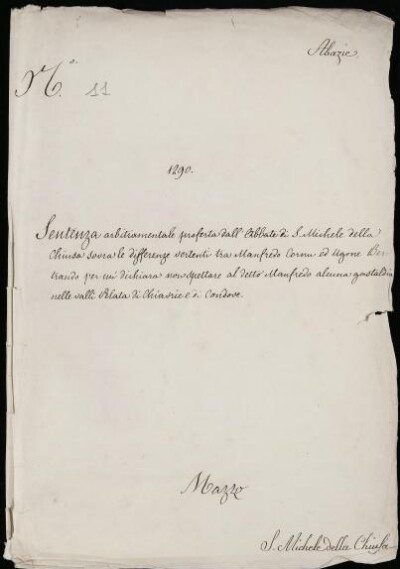 Sei in Strumenti di ricerca: Sezione Corte | Abbazie Chiusa San Michele in Materie ecclesiastiche [Inventario n. 315.4] | San Michele della Chiusa | Fascicolo 11