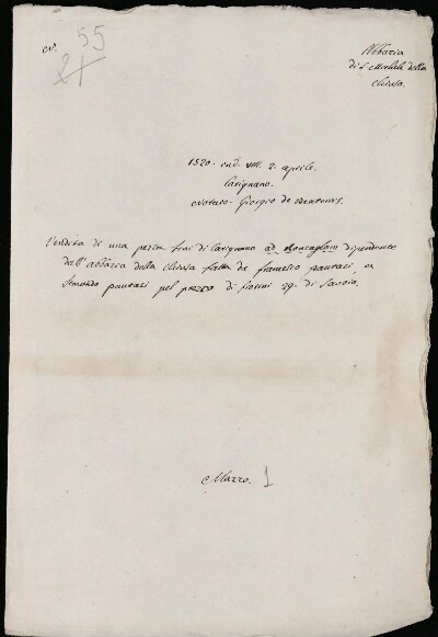 Sei in Strumenti di ricerca: Sezione Corte | Abbazie Chiusa San Michele in Materie ecclesiastiche [Inventario n. 315.4] | San Michele della Chiusa | Fascicolo 55