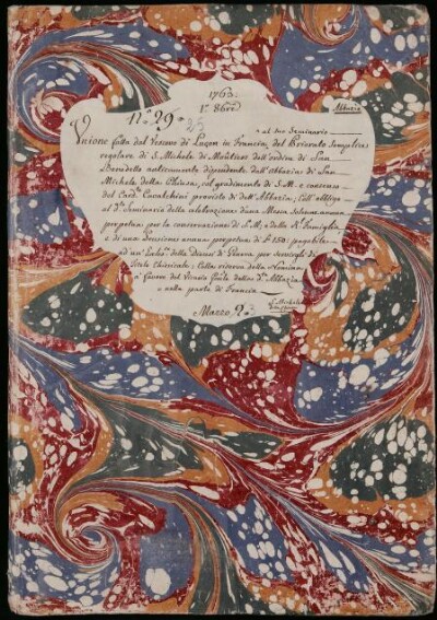 Unione fatta dal vescovo di Luçon in Francia al suo seminario del priorato semplice regolare di S. Michele di Moutiers dell'ordine di S. Benedetto anticamente dipendente dall'abbazia di S. Michele della Chiusa, col gradimento di S.M. e consenso del cardinale Cavalchini provvisto di detta abbazia; coll'obbligo al detto seminario della celebrazione d'una messa solenne annua perpetua per la conservazione di S.M. e della R. famiglia e di una pensione annua perpetua di £.150 pagabile ad un eccles.co della diocesi di Genova per servigli di titolo clericale; colla riserva della nomina a favore del vicario gen.le della detta abbazia nella parte di Francia. 1763, 1 ott.