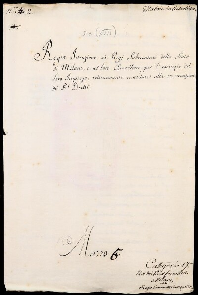 Sei in Strumenti di ricerca: Sezione Corte | Materie ecclesiastiche per categorie [Inventario n. 79.2] | Categoria 17. Usi dei Paesi Forestieri | Milano Regio Economato ed Exequatur | Fascicolo 2